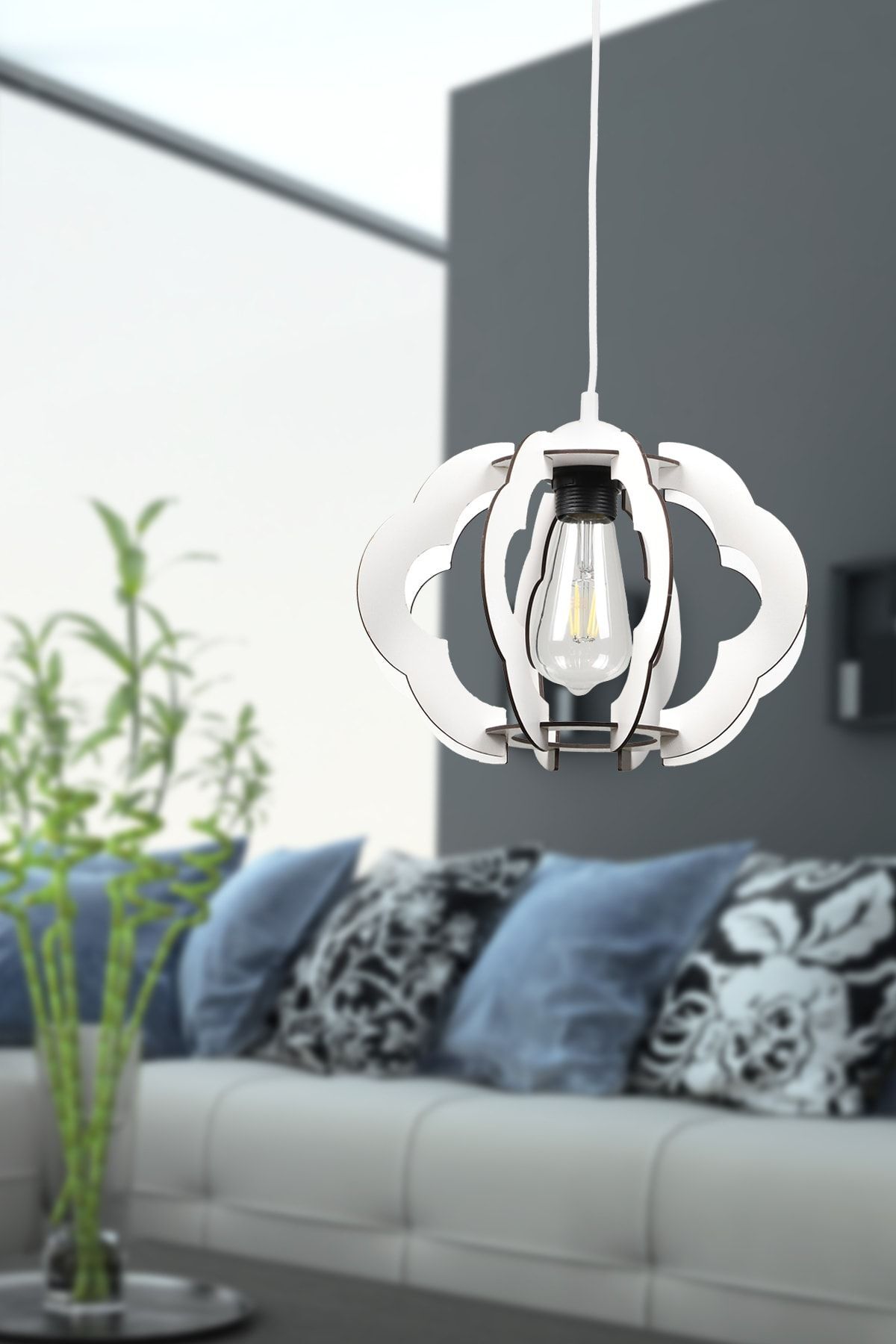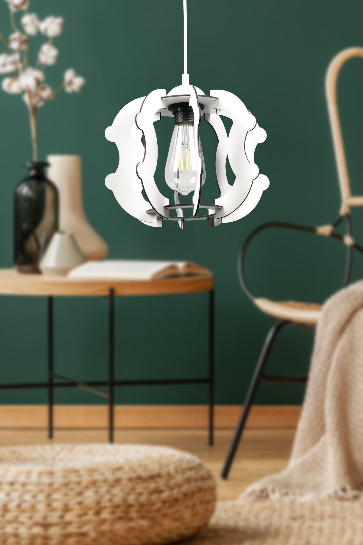 Urla Tekli Beyaz Ahşap Avize No:1 Urla Tekli Beyaz Ahşap Avize No:1 BEG1017B تک سایز