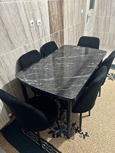 Via Serisi 80x132 Açılabilir Mutfak Masası Takımı Siyah Mermer Desen Masa 6 Siyah Sandalye Via Serisi 80x132 Açılabilir Mutfak Masası Takımı Siyah Mermer Desen Masa 6 Siyah Sandalye PRA-4471399-992353 تک سایز