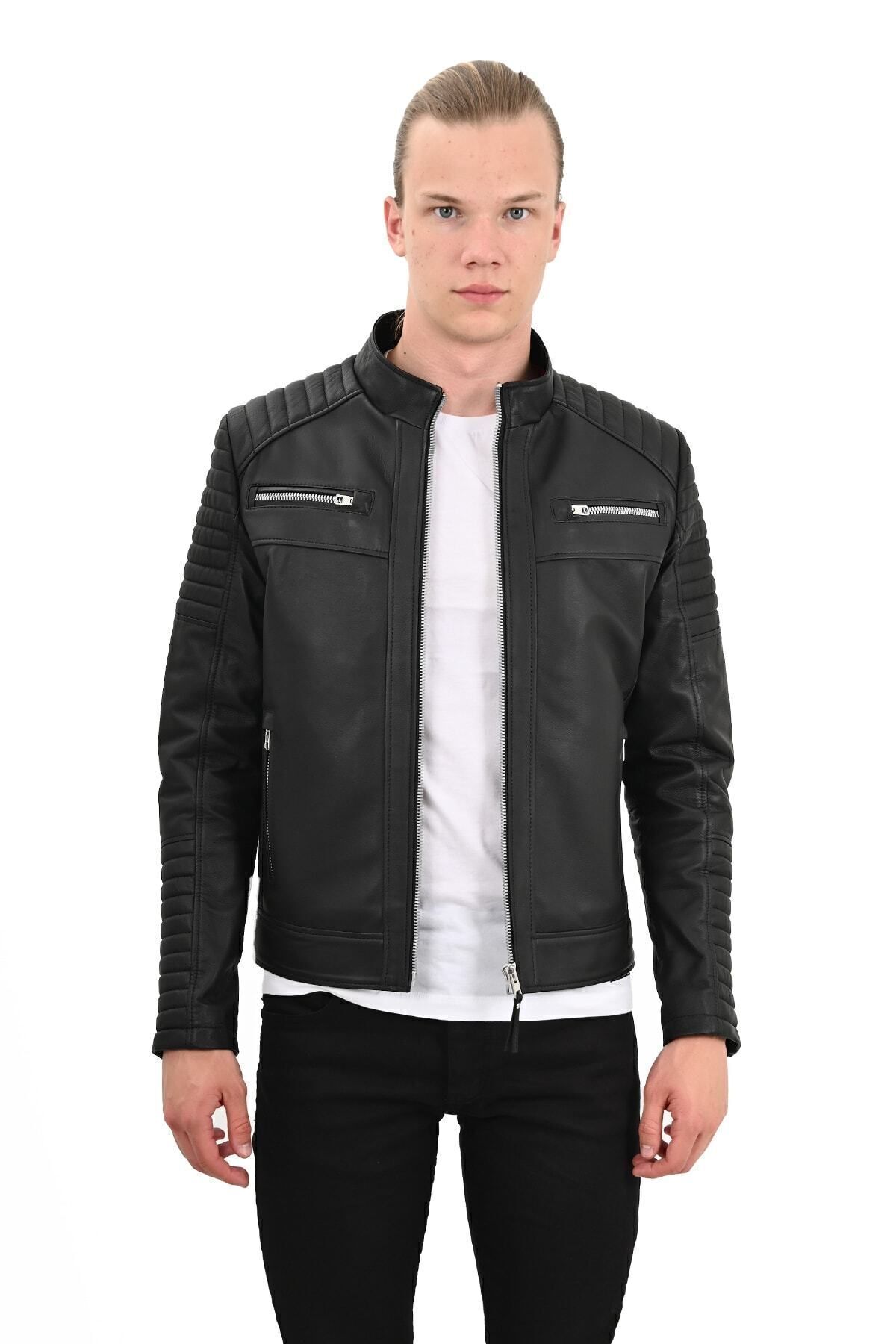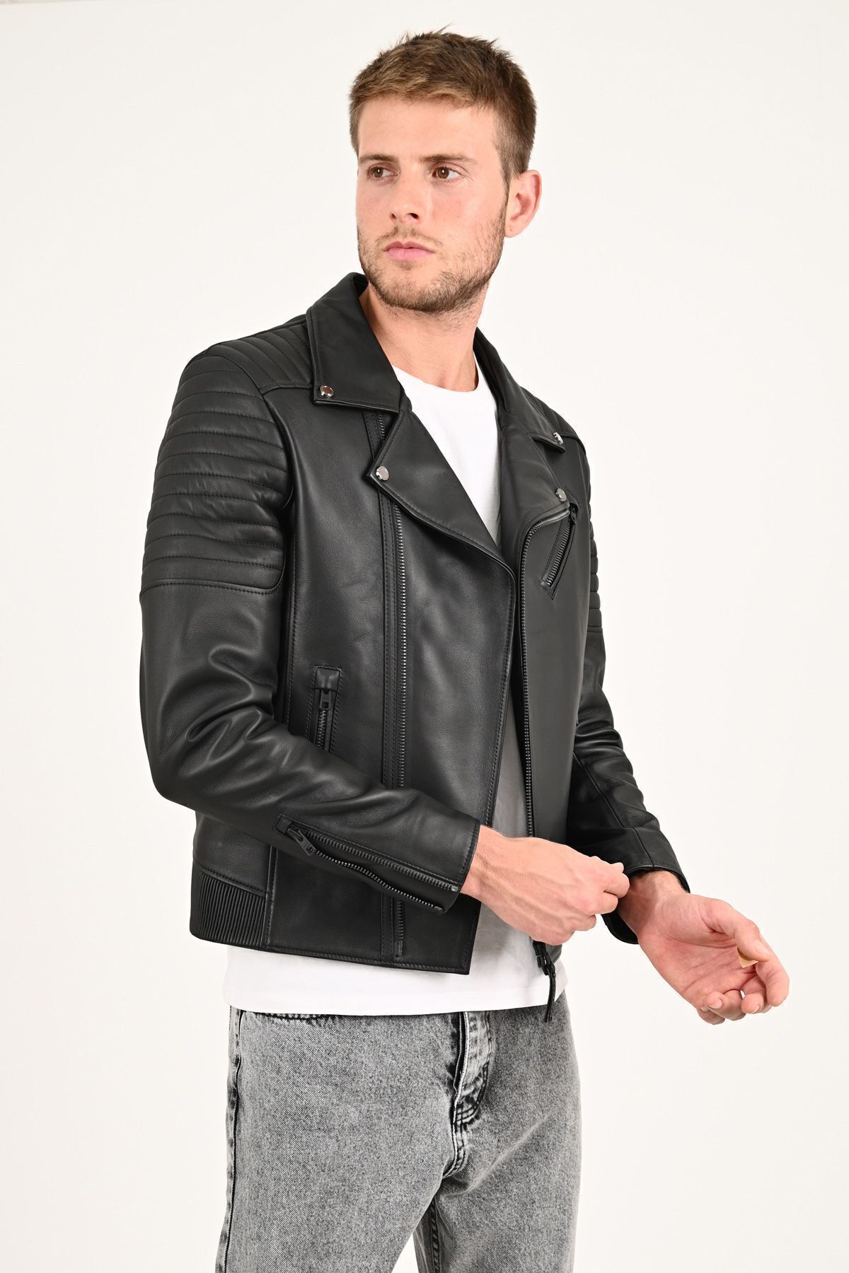 Echo Erkek Siyah Biker Hakiki Deri Ceket Beden Ölçüleri Görselde Echo Erkek Siyah Biker Hakiki Deri Ceket Beden Ölçüleri Görselde V2M4018 XL