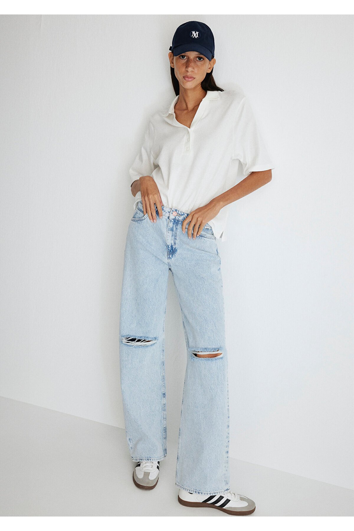 Mavi Likralı Süper Yüksek Bel Yırtık Kot Salaş Paça Jeans Palazzo Pantolon Mavi Likralı Süper Yüksek Bel Yırtık Kot Salaş Paça Jeans Palazzo Pantolon SLSPACA-1534 34