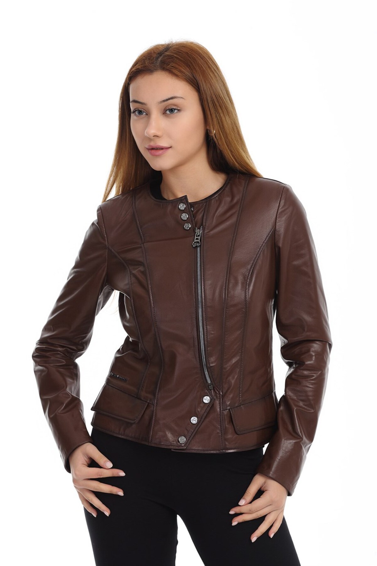Marionx Kolej Yaka Fermuarli Gerçek Deri Ceket Marionx Kolej Yaka Fermuarli Gerçek Deri Ceket PCB160064 42