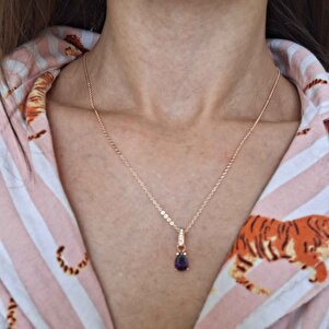 Mor Mistik Topaz Taşlı 14 K Rose Altın Kaplama Kadın Kolye Mor Mistik Topaz Taşlı 14 K Rose Altın Kaplama Kadın Kolye K45 45 cm
