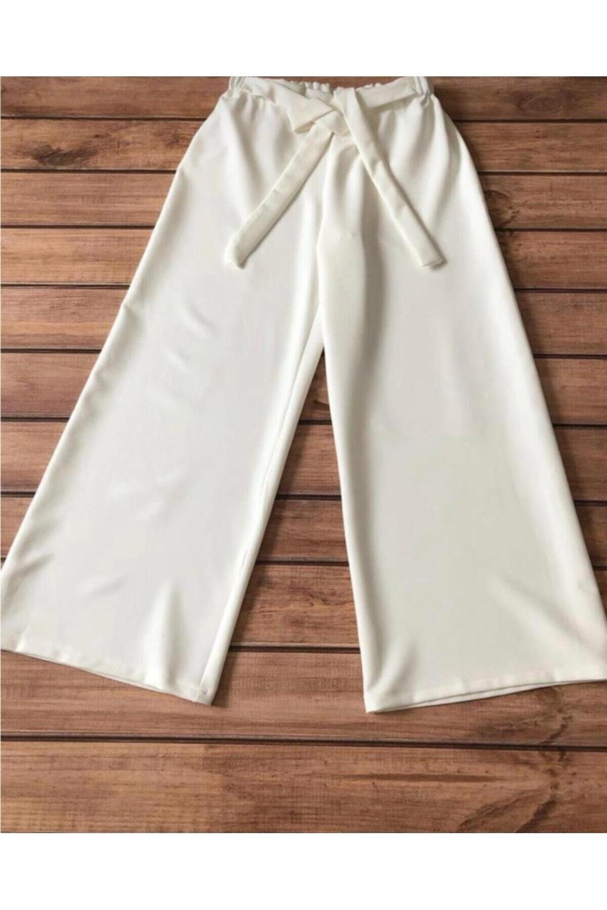 Kuşaklı Bol Paça Pantolon - Taş Kuşaklı Bol Paça Pantolon - Taş MODAQU1007 48