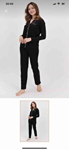 Classic Siyah Kadın Gömlek Pijama Takımı Classic Siyah Kadın Gömlek Pijama Takımı PC7717-S XL
