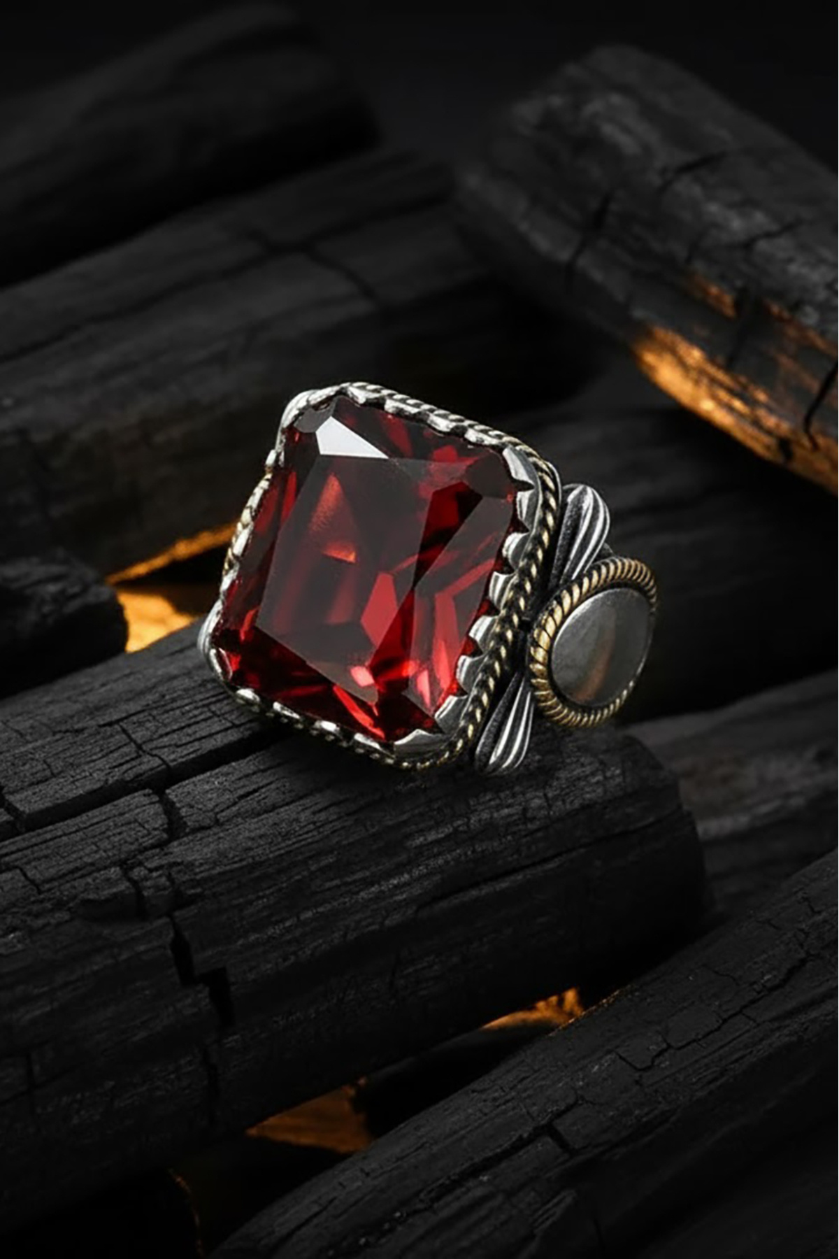Kırmızı Zirkon Taşlı Gümüş Yüzük Kırmızı Zirkon Taşlı Gümüş Yüzük EYO2670 30