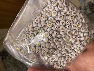 50 Gr Harf Boncuk,4x7mm Yassı Beyaz Üzeri Gold / Altınsarısı Yaldızlı Harf Boncuk (50gr,~345 Adet) 50 Gr Harf Boncuk,4x7mm Yassı Beyaz Üzeri Gold / Altınsarısı Yaldızlı Harf Boncuk (50gr,~345 Adet) GOLDYASSIHARF تک سایز