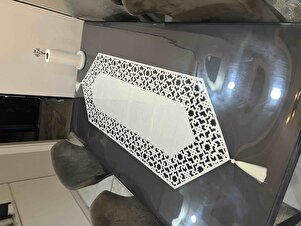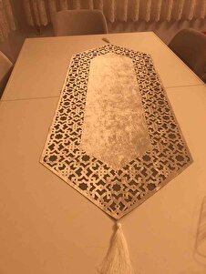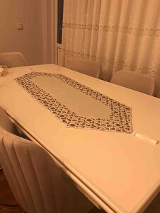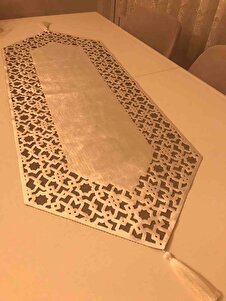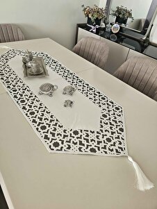 Selçuklu Modeli Ekru Renk Altı Siyah Tüllü Masa Runner Selçuklu Modeli Ekru Renk Altı Siyah Tüllü Masa Runner SELCUKLU تک سایز