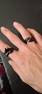 Tüy Yaprak Figürlü Ayarlanabilir Siyah Erkek-kadın Yüzük Tüy Yaprak Figürlü Ayarlanabilir Siyah Erkek-kadın Yüzük the4213 تک سایز