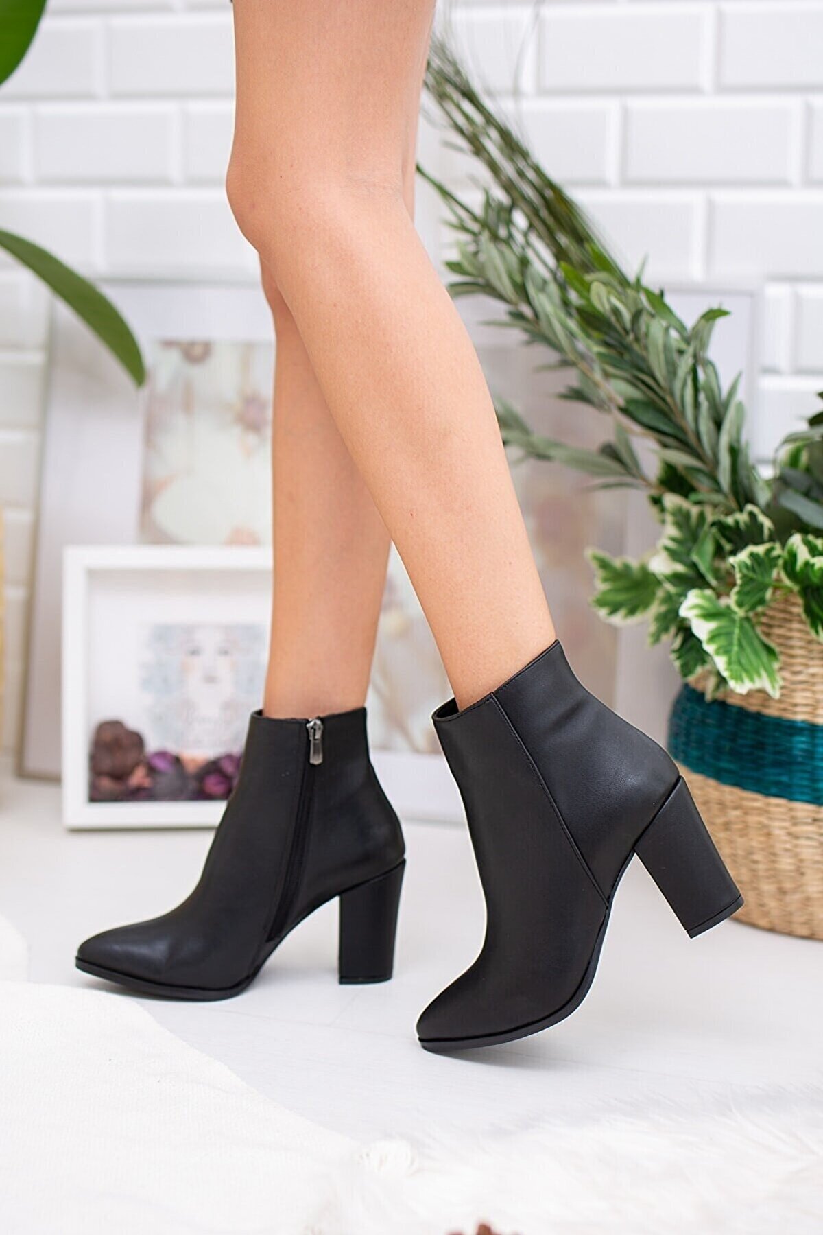Kadın Siyah Sivri Burunlu Fermuarlı Kısa Topuklu Bot Kadın Siyah Sivri Burunlu Fermuarlı Kısa Topuklu Bot RYNAYKYILDIZBOT 40
