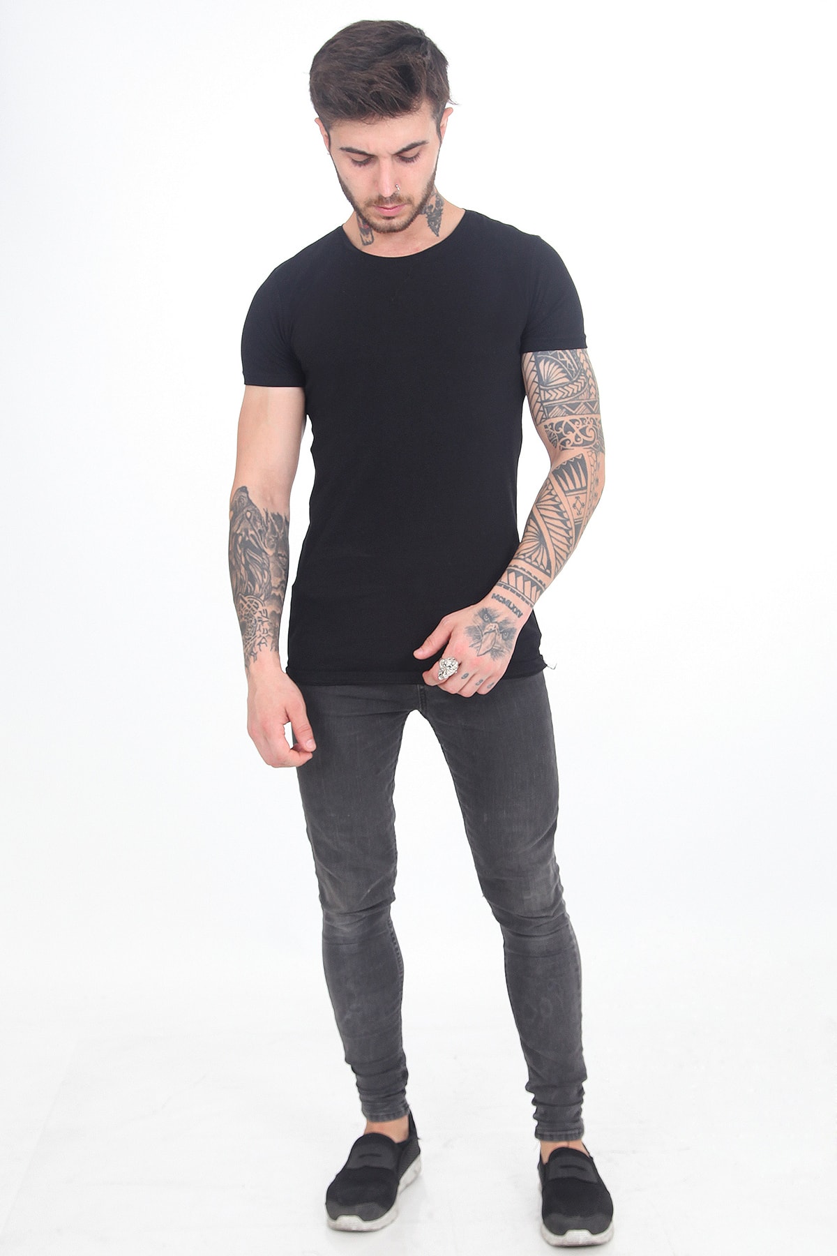 Erkek Siyah Pisyaka Likralı Kısa Kollu Slim Fit Tişört Erkek Siyah Pisyaka Likralı Kısa Kollu Slim Fit Tişört THE-4515 XL/2XL