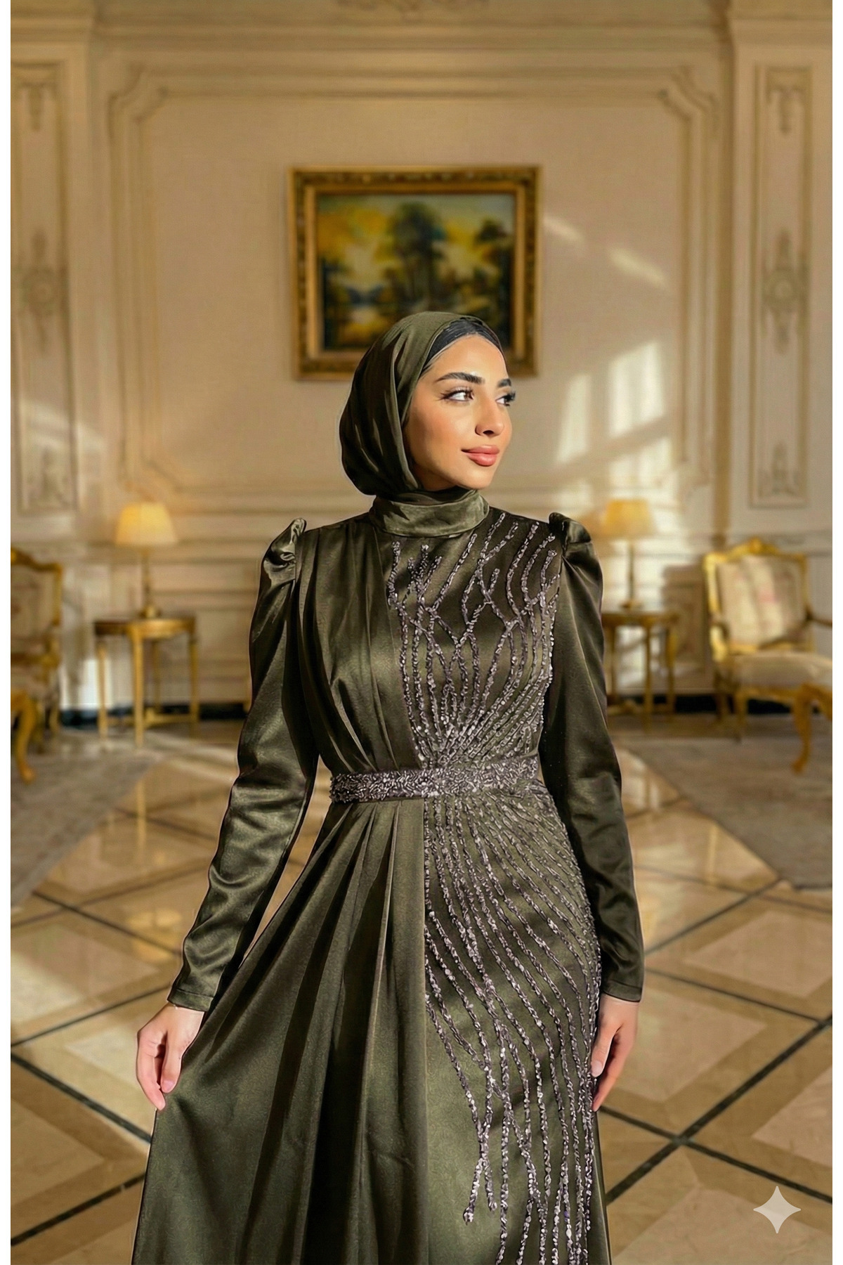 Pul Payetli Ekru Tesettür Abiye Elbise 5338E Pul Payetli Ekru Tesettür Abiye Elbise 5338E ARM-5338 52