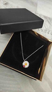 Kadın Papatya Ve Uğur Böceği Mineli 925 Ayar Gümüş Kolye Kadın Papatya Ve Uğur Böceği Mineli 925 Ayar Gümüş Kolye 00764 46 cm