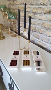 Premium Seri Kokulu Gold Rengi Sedefli Konik Şamdan Mum - 4'lü Set Premium Seri Kokulu Gold Rengi Sedefli Konik Şamdan Mum - 4'lü Set SSI0049N تک سایز