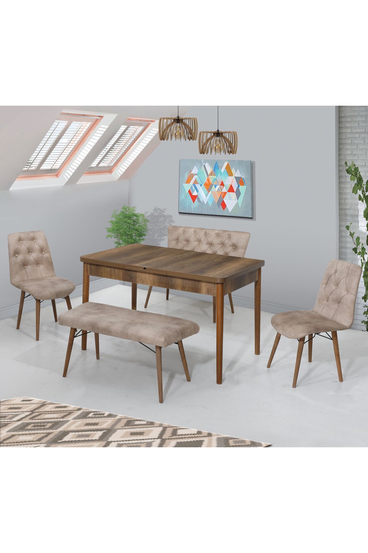 Rio Serisi Bench'li Barok Ahşap Desenli Mdf Mutfak Masası 4 Hardal Sandalye Takımı Rio Serisi Bench'li Barok Ahşap Desenli Mdf Mutfak Masası 4 Hardal Sandalye Takımı PRA-4560114-518271 تک سایز