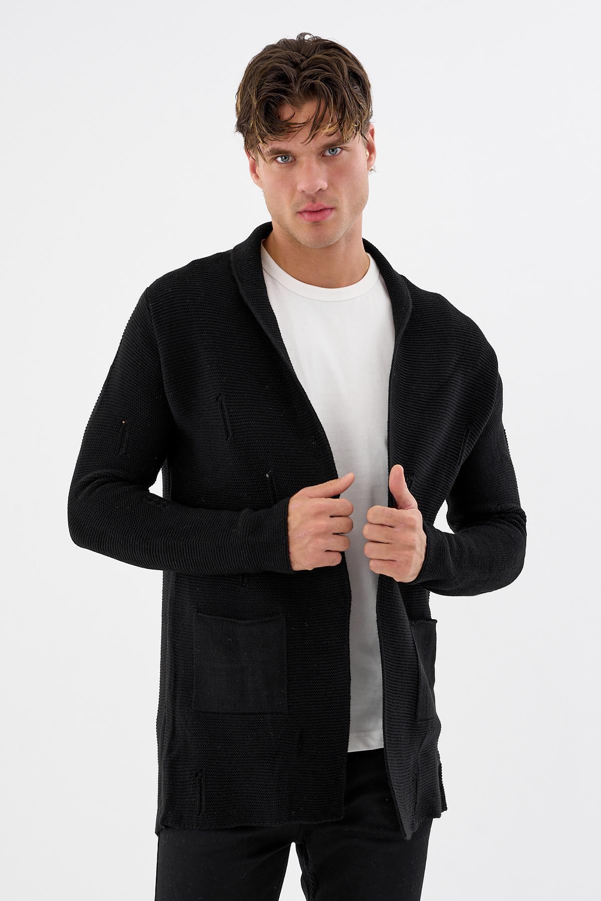 Erkek Yırtık Detaylı Cepli Triko Uzun Salaş Spor Hırka Erkek Yırtık Detaylı Cepli Triko Uzun Salaş Spor Hırka 6380 2XL