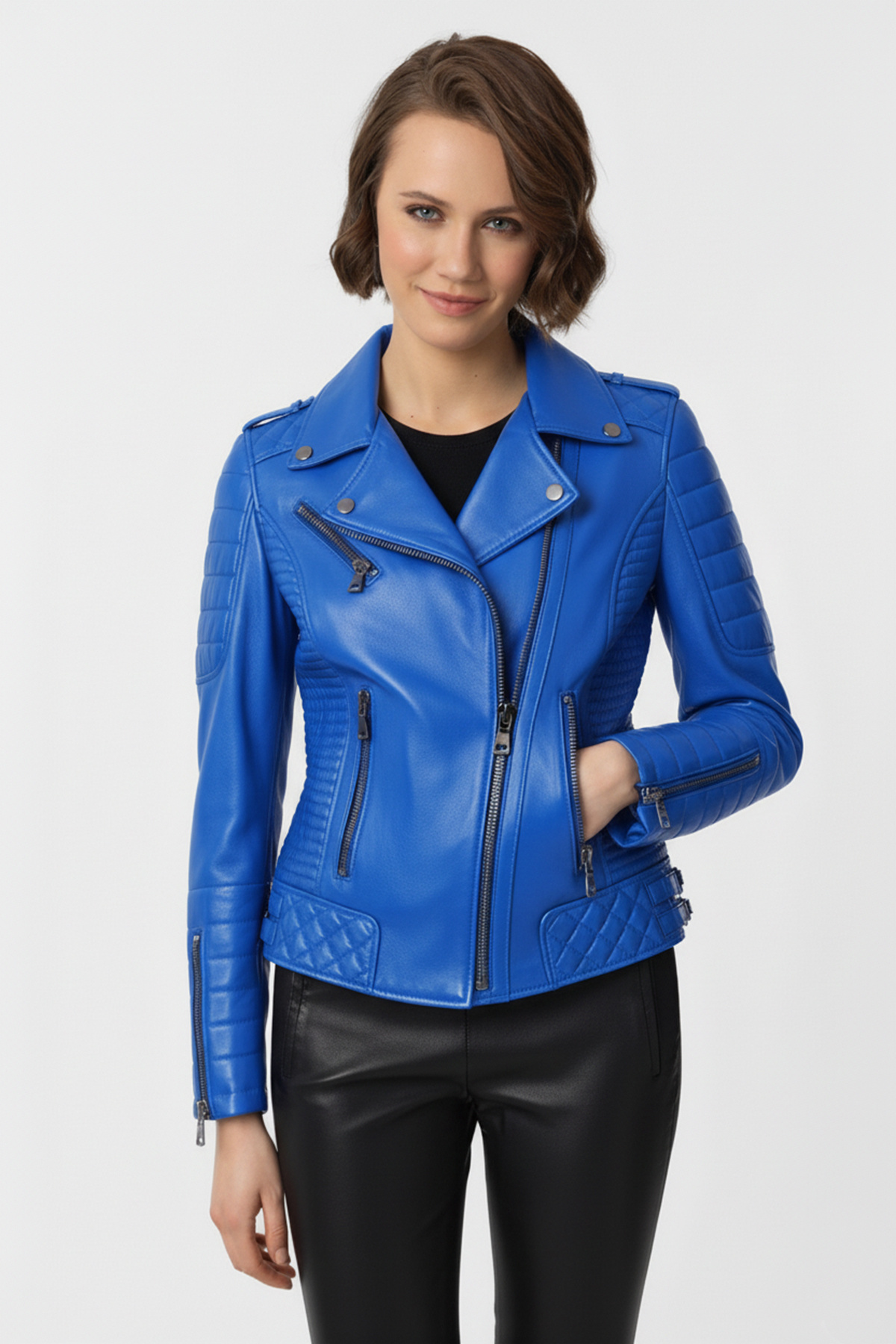 Hakiki Deri Kadın Ceket - Hakim Yaka Fermuarlı Hakiki Deri Kadın Ceket - Hakim Yaka Fermuarlı B099 3XL