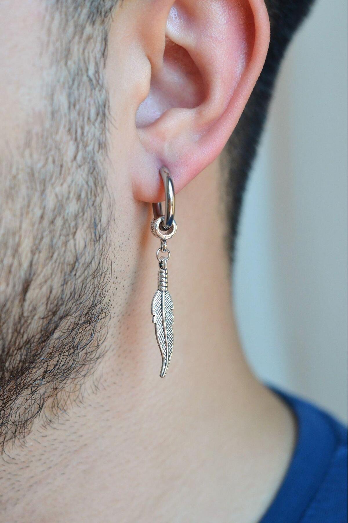 Unisex 316l Cerrahi Çelik Gümüş Renk Sallantılı Tüy Halka Küpe Unisex 316l Cerrahi Çelik Gümüş Renk Sallantılı Tüy Halka Küpe JMD617 12 MM