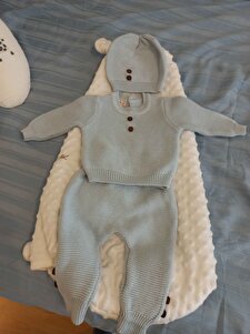 Triko Düğme Detaylı 3'lü Takım Mavi Triko Düğme Detaylı 3'lü Takım Mavi 7602TKM 9 - 12 Ay