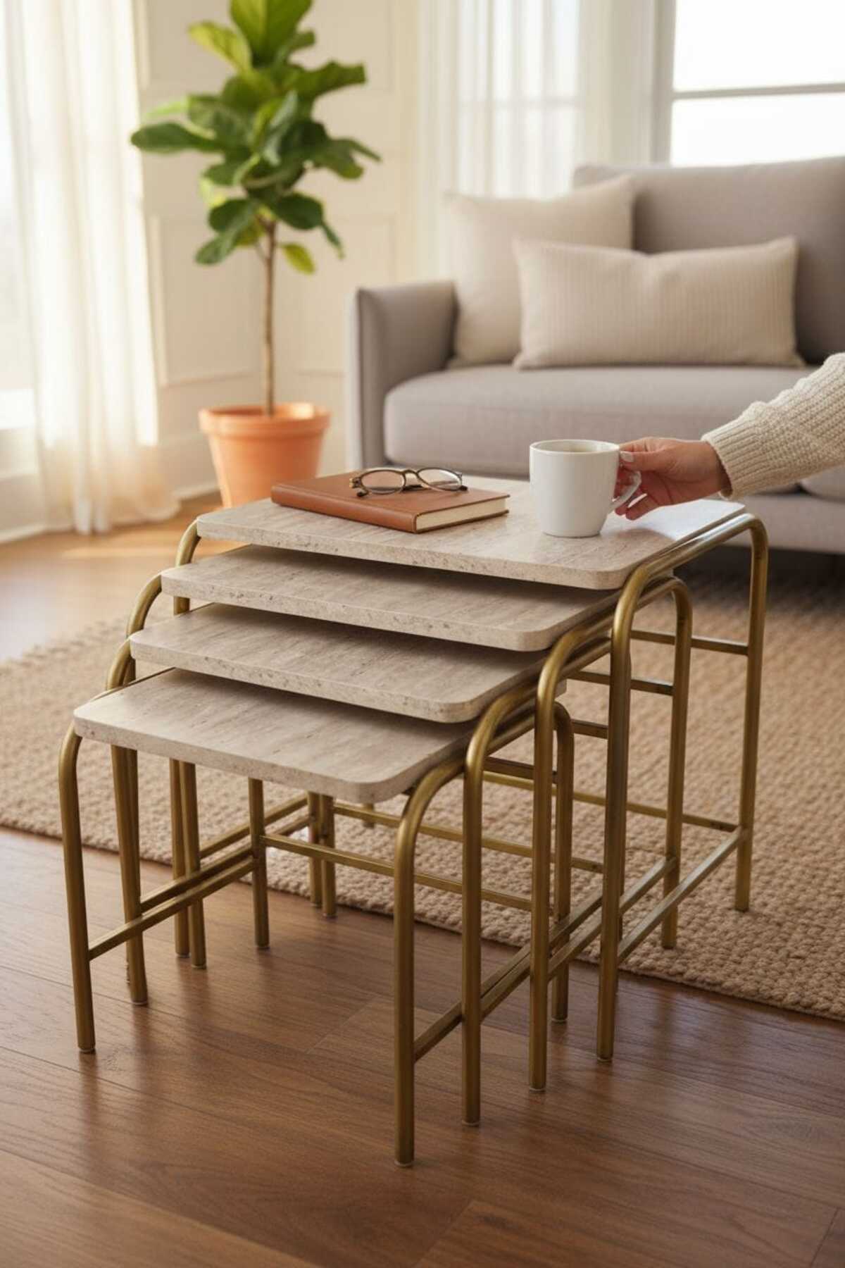 4'lü Zigon Sehpa Sarı Nikelaj Kaplama Metal Ayaklı Alaca Beyaz Mermer Desen 4'lü Zigon Sehpa Sarı Nikelaj Kaplama Metal Ayaklı Alaca Beyaz Mermer Desen P96547S201 تک سایز