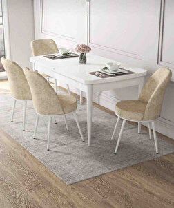 Kor Serisi 70x114 Açılabilir Mutfak Masa Takımı Beyaz Masa 4 Krem Sandalye Kor Serisi 70x114 Açılabilir Mutfak Masa Takımı Beyaz Masa 4 Krem Sandalye PRA-4588291-690333 تک سایز