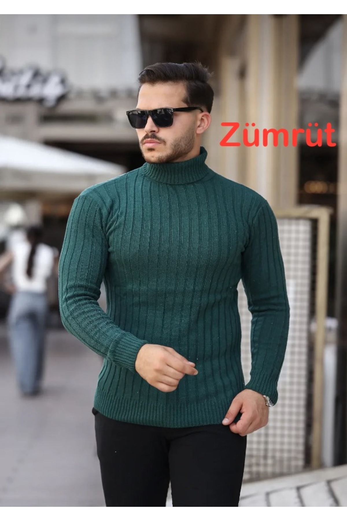 Erkek Haki Tam Balıkçı Yaka Fitilli Kalın Triko Kazak Erkek Haki Tam Balıkçı Yaka Fitilli Kalın Triko Kazak 21KFBK001 XL