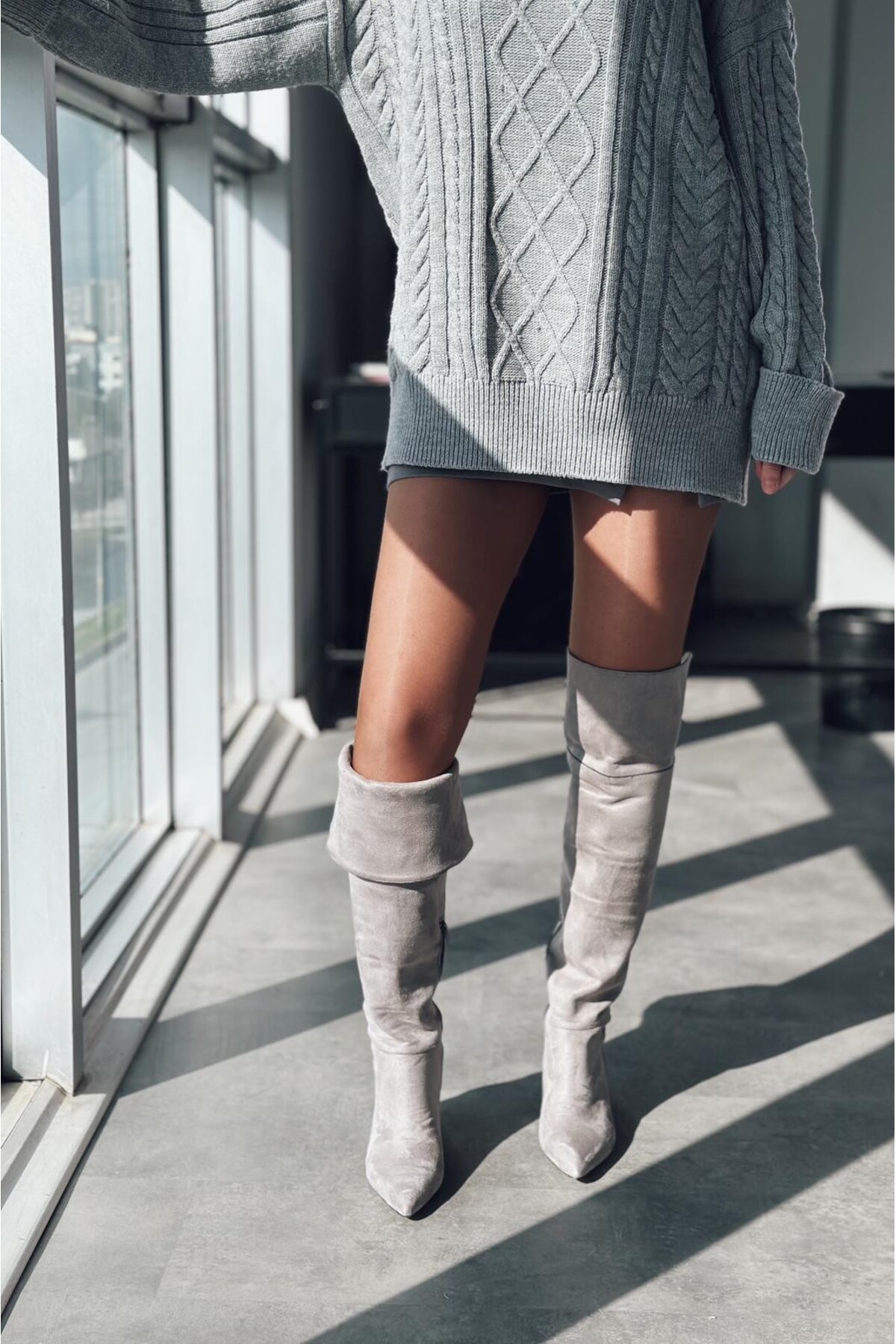 Happy Gri Süet Diz Altı Strec Cizme Happy Gri Süet Diz Altı Strec Cizme 5985862001 40