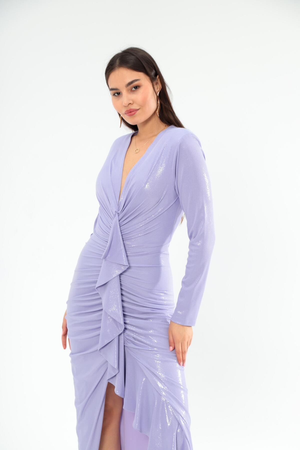 Lila Ip Askılı Yırtmaçlı Elbise Lila Ip Askılı Yırtmaçlı Elbise SA-16lila XL