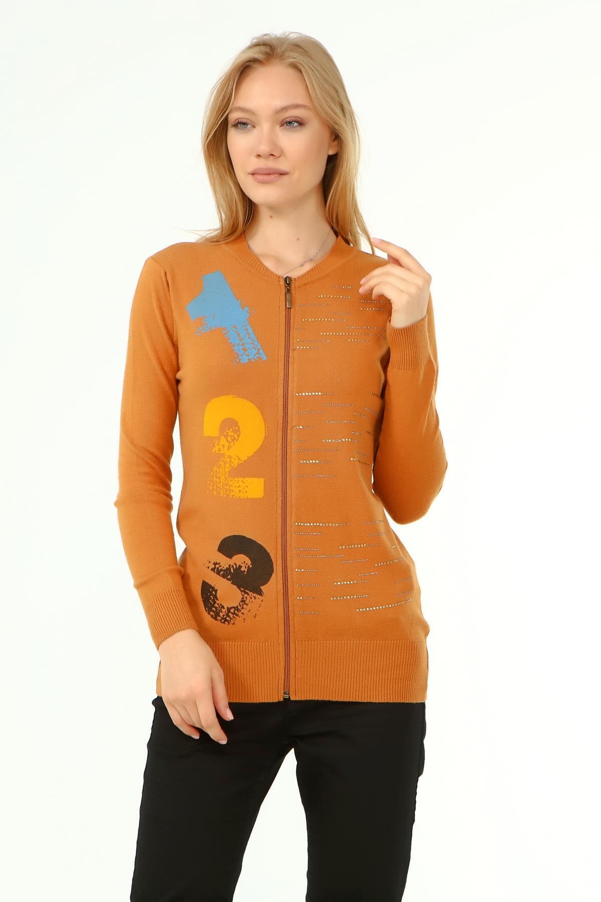 Kadın Baskı Taş Detaylı Hırka Soğan 21-1342 Kadın Baskı Taş Detaylı Hırka Soğan 21-1342 2