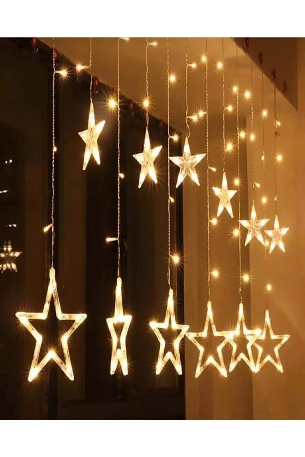 Dekoratif 8 Fonksiyonlu Yıldız Desenli Perde Led 12 Sarkıt Ip Led Dekoratif 8 Fonksiyonlu Yıldız Desenli Perde Led 12 Sarkıt Ip Led BYS-ÇİFTYILDIZLI-P.L تک سایز