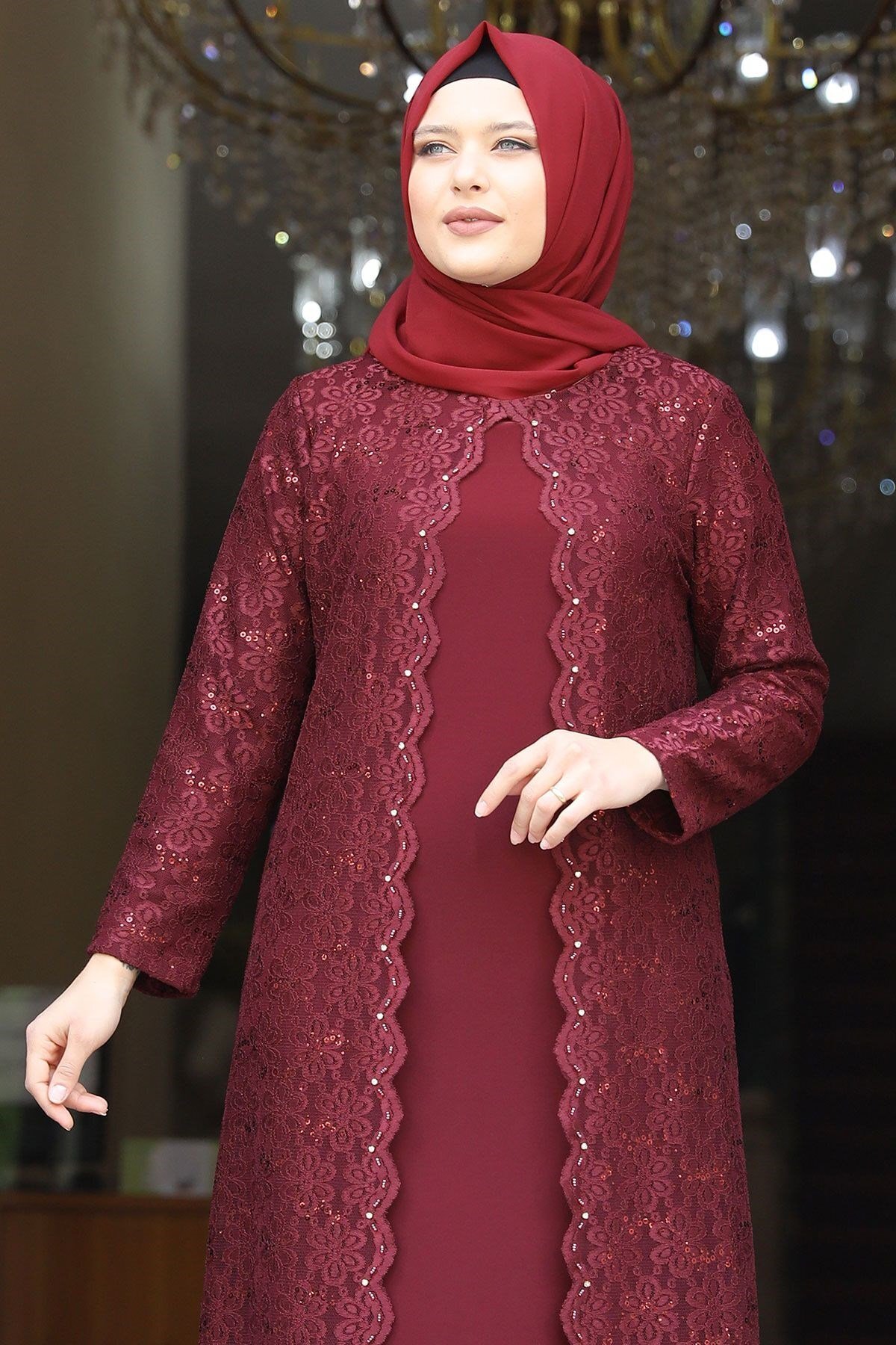 Papatya Tesettür Abiye Elbise Bordo Papatya Tesettür Abiye Elbise Bordo 3293 56