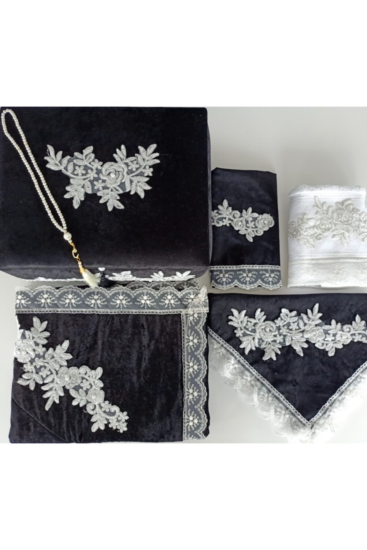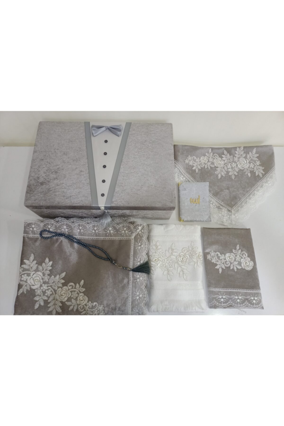 Lüks Gri Hurçlu Kadife Seccade Takımı Çeyizlik 8 Parça Bohça Seti Lüks Gri Hurçlu Kadife Seccade Takımı Çeyizlik 8 Parça Bohça Seti ASEL00284 70 x 120