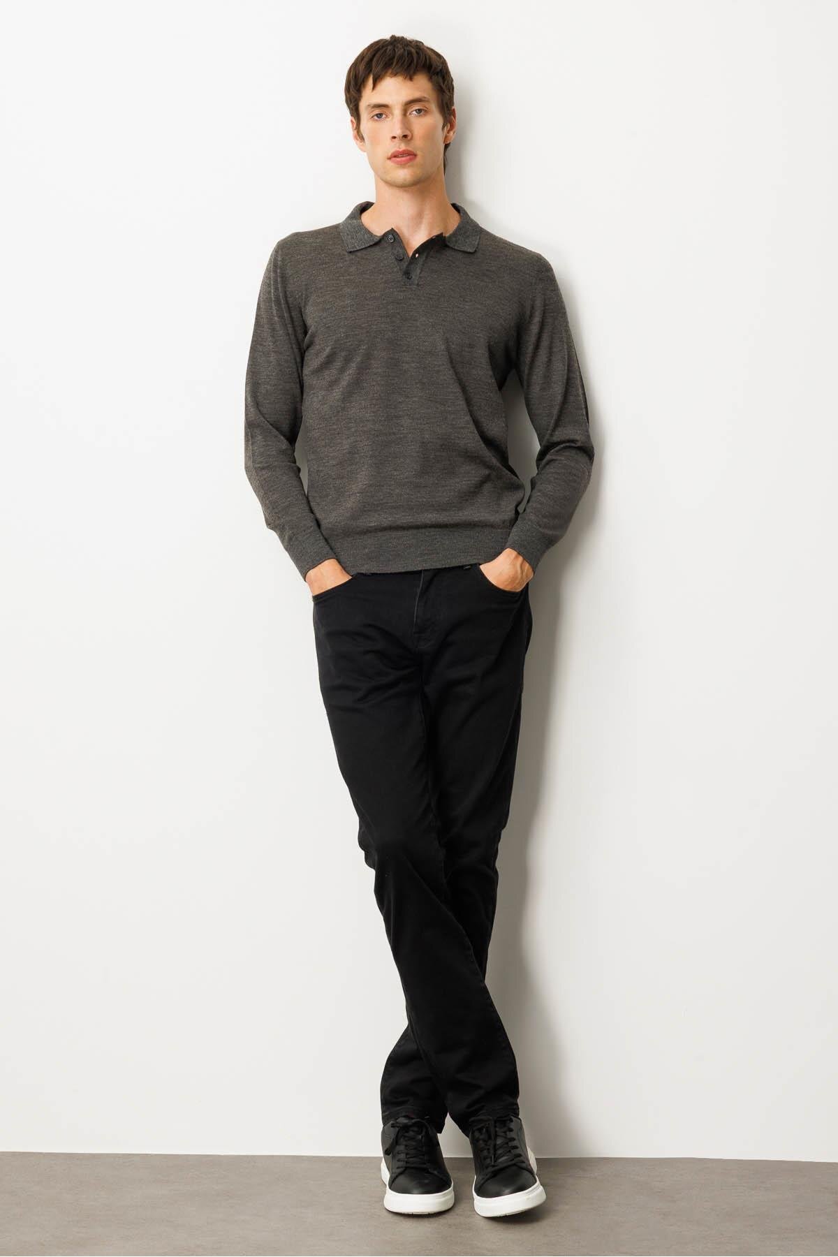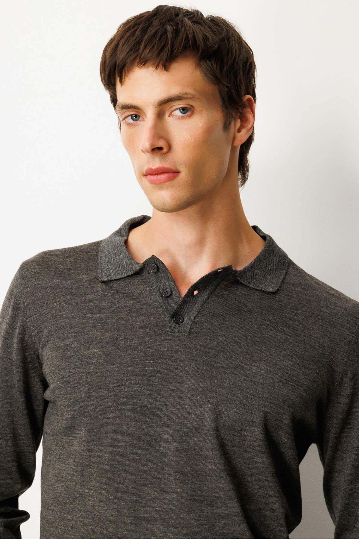 Erkek Basic Polo Yaka İnce Triko Kazak K.Füme Erkek Basic Polo Yaka İnce Triko Kazak K.Füme 21601 4XL