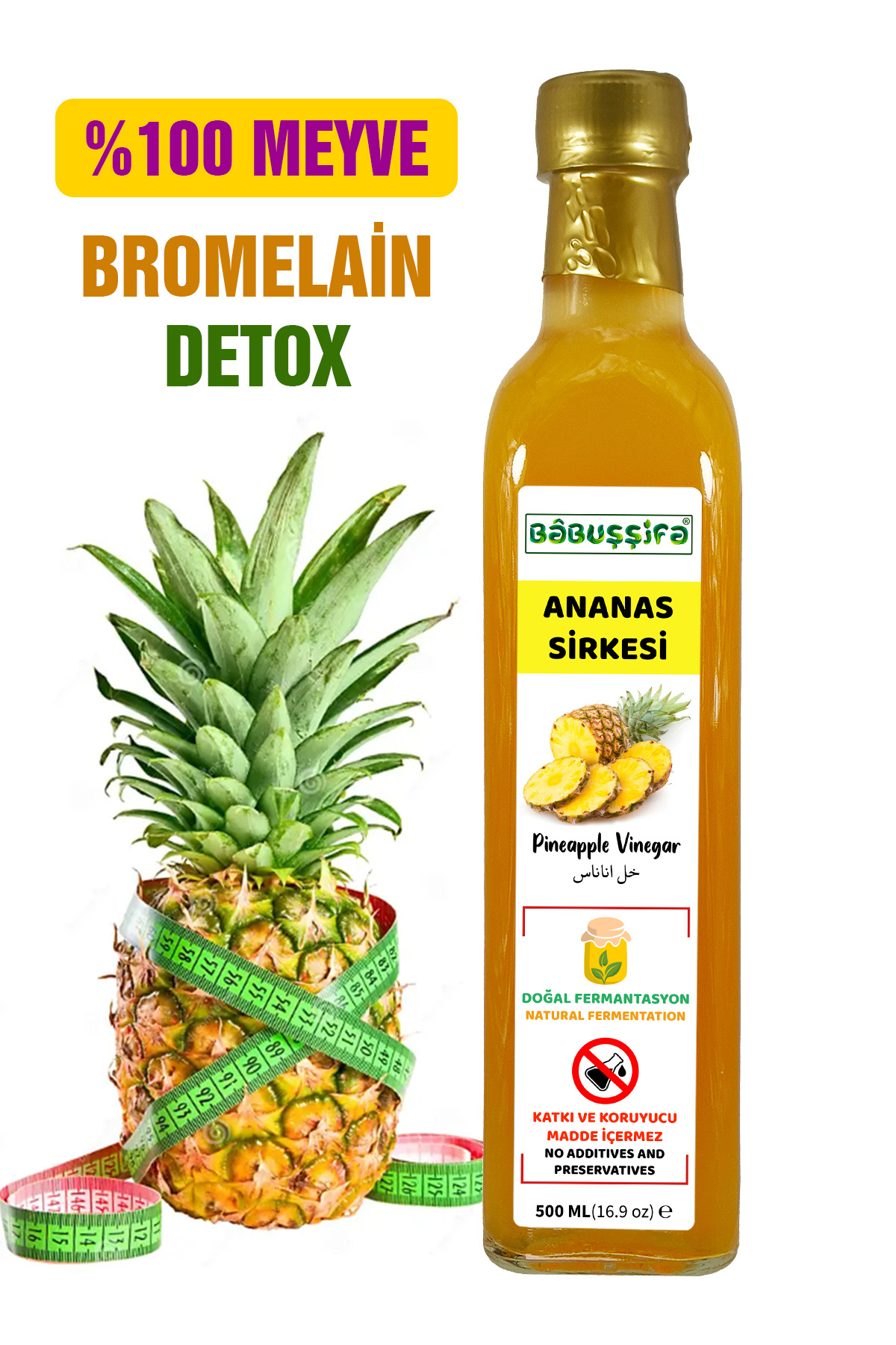 Ananas Sirkesi Doğal Fermantasyon 500ml Ananas Sirkesi Doğal Fermantasyon 500ml YSNNSSRKS تک سایز
