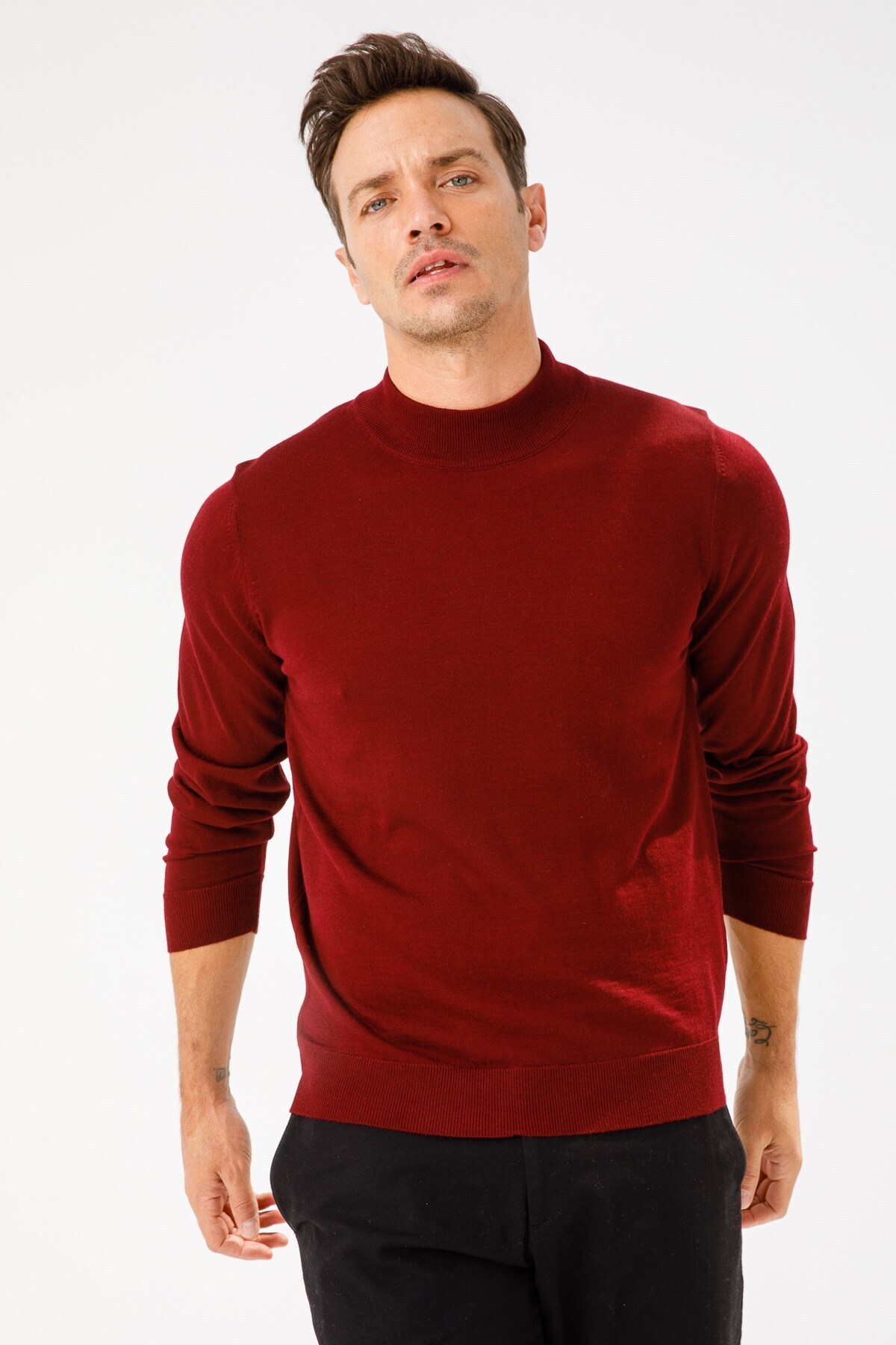 Erkek Basic Yarım Balıkçı Ince Triko Kazak Koyu Kırmızı Erkek Basic Yarım Balıkçı Ince Triko Kazak Koyu Kırmızı 21604 4XL