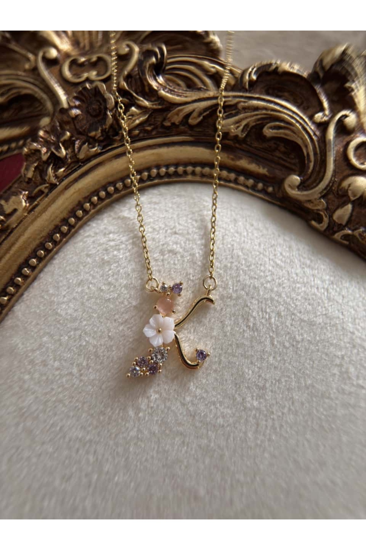 Işıltılı Manolya Çiçeği K Harfi Rose Renk Gümüş Harfli Kolye Işıltılı Manolya Çiçeği K Harfi Rose Renk Gümüş Harfli Kolye KL02821-MLV تک سایز
