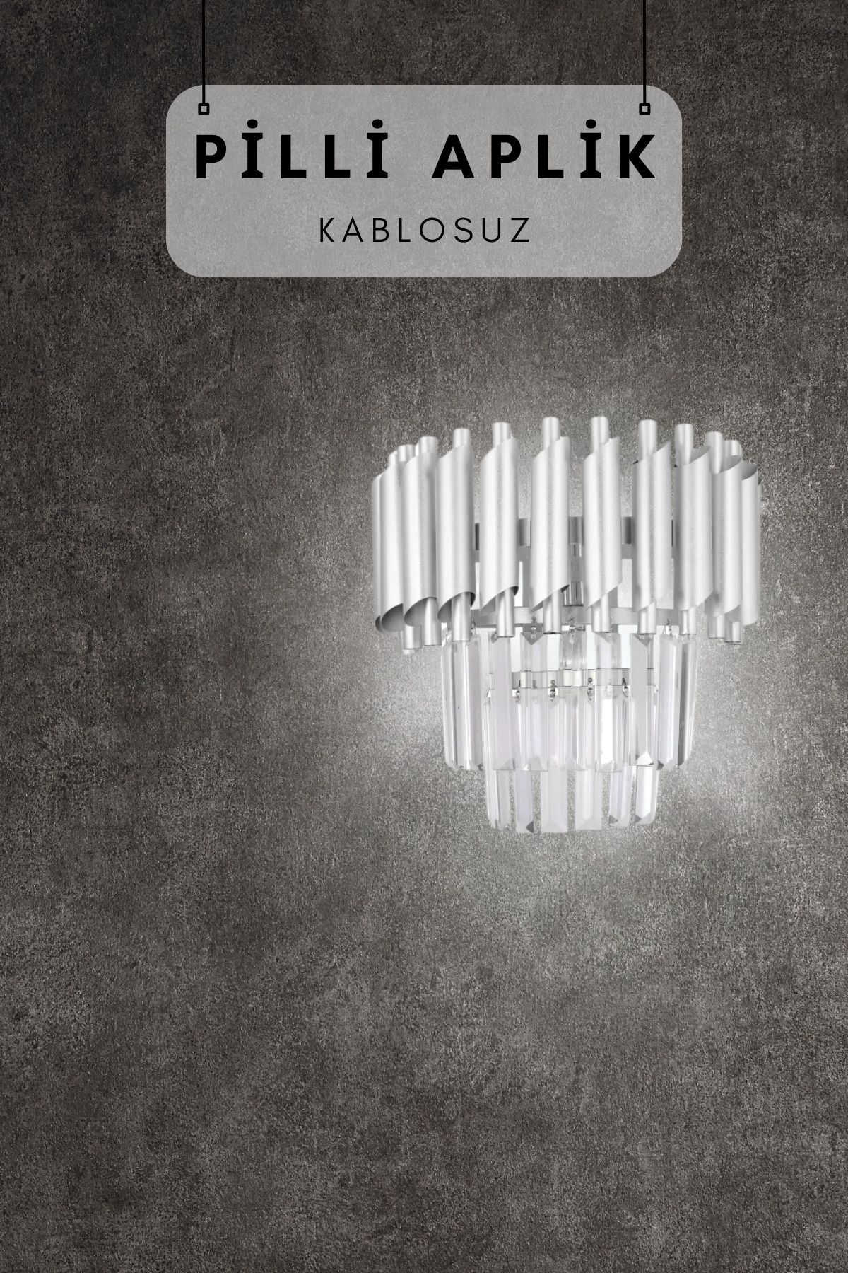 Pilli Dekoratif Lüx Aplik Silver Model Dekoratif Ipli Led Aplik Pilli Dekoratif Lüx Aplik Silver Model Dekoratif Ipli Led Aplik ipli-3 تک سایز