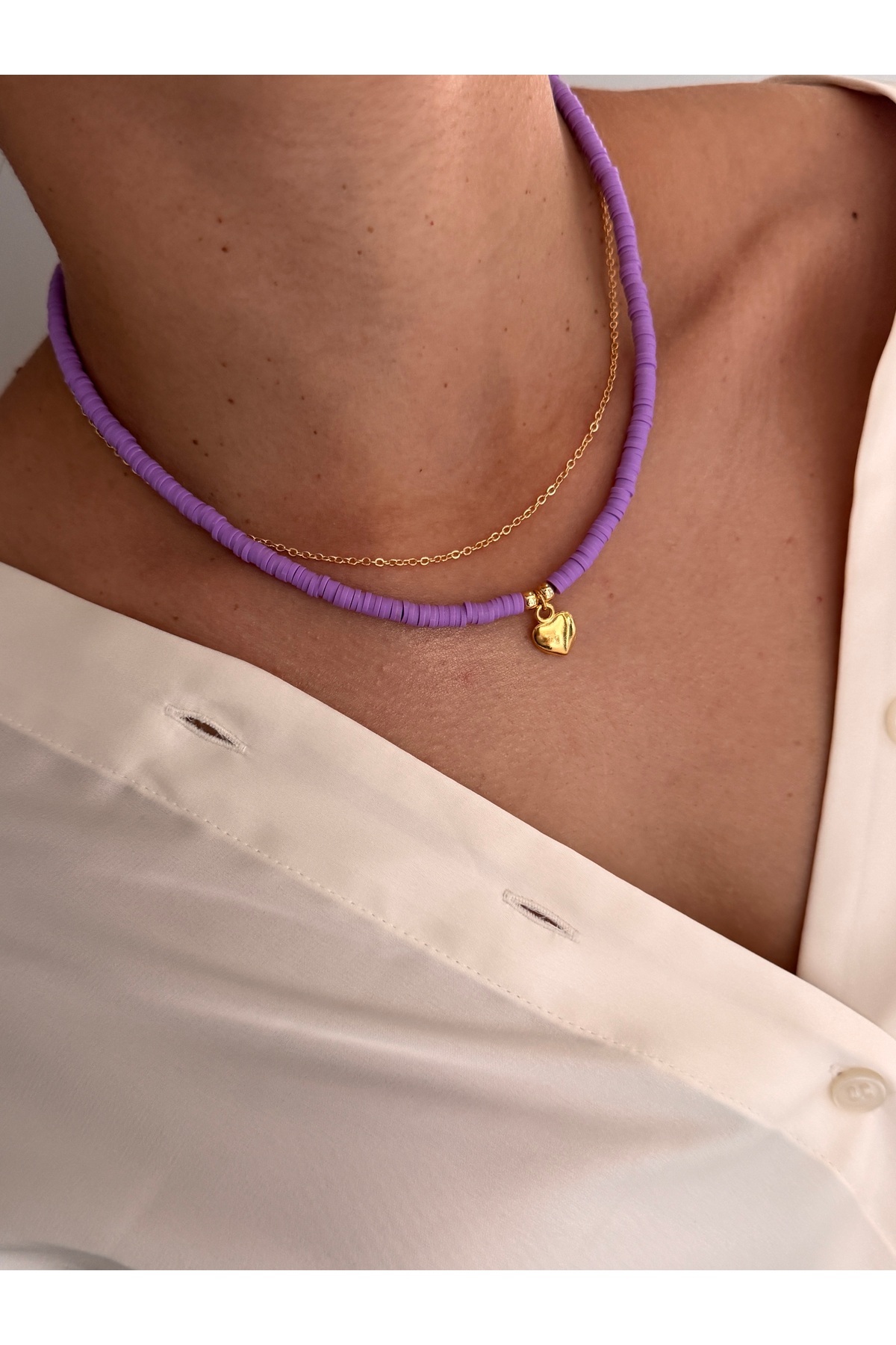 Kalpli Lila Fimo Kolye | Zincirli Fimo Kolye | 2'li Kolye | Yazlık Kolye | Renkli Kolye Kalpli Lila Fimo Kolye | Zincirli Fimo Kolye | 2'li Kolye | Yazlık Kolye | Renkli Kolye M1533 تک سایز