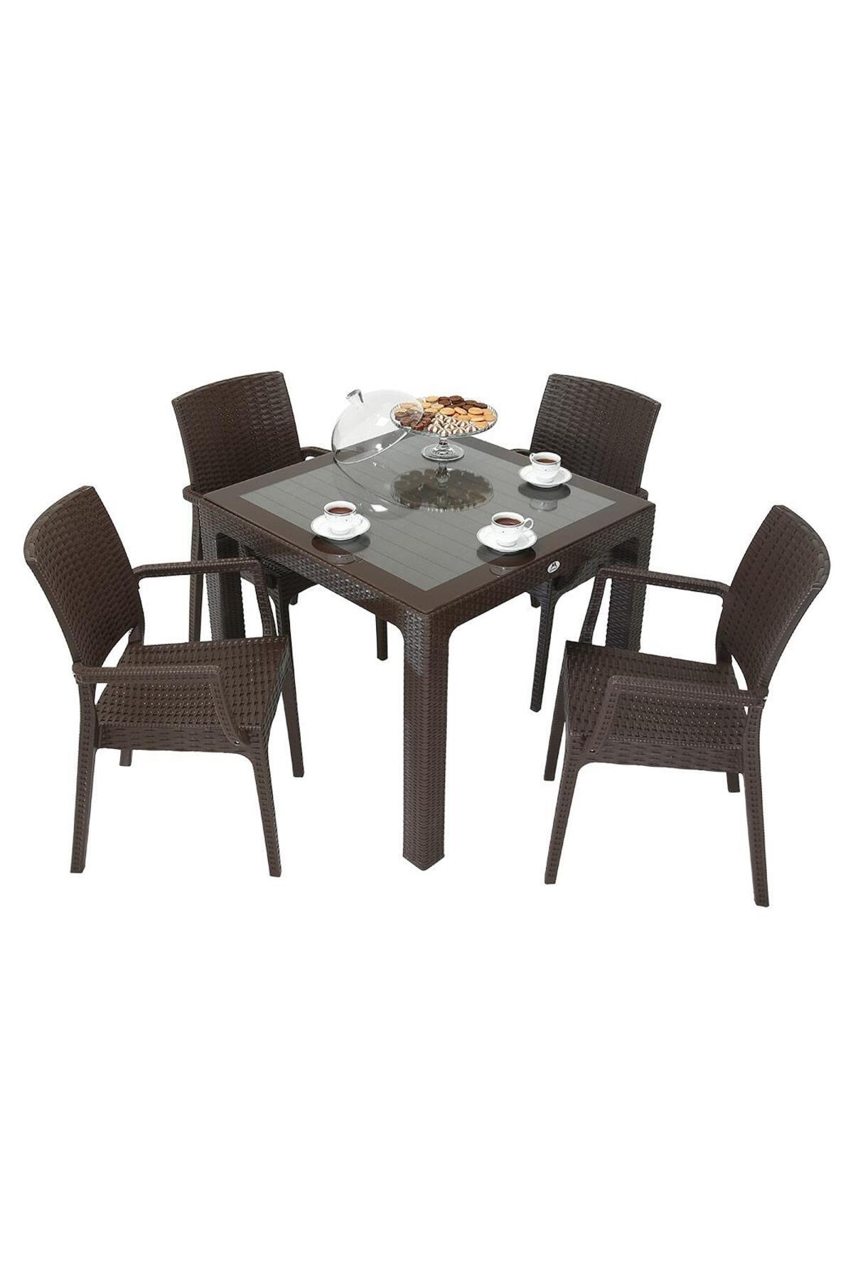 Elit Rattan 90x90 Eylül Kollu Sandalye Camlı Masa Takımı Kahverengi Elit Rattan 90x90 Eylül Kollu Sandalye Camlı Masa Takımı Kahverengi EylülK4C تک سایز