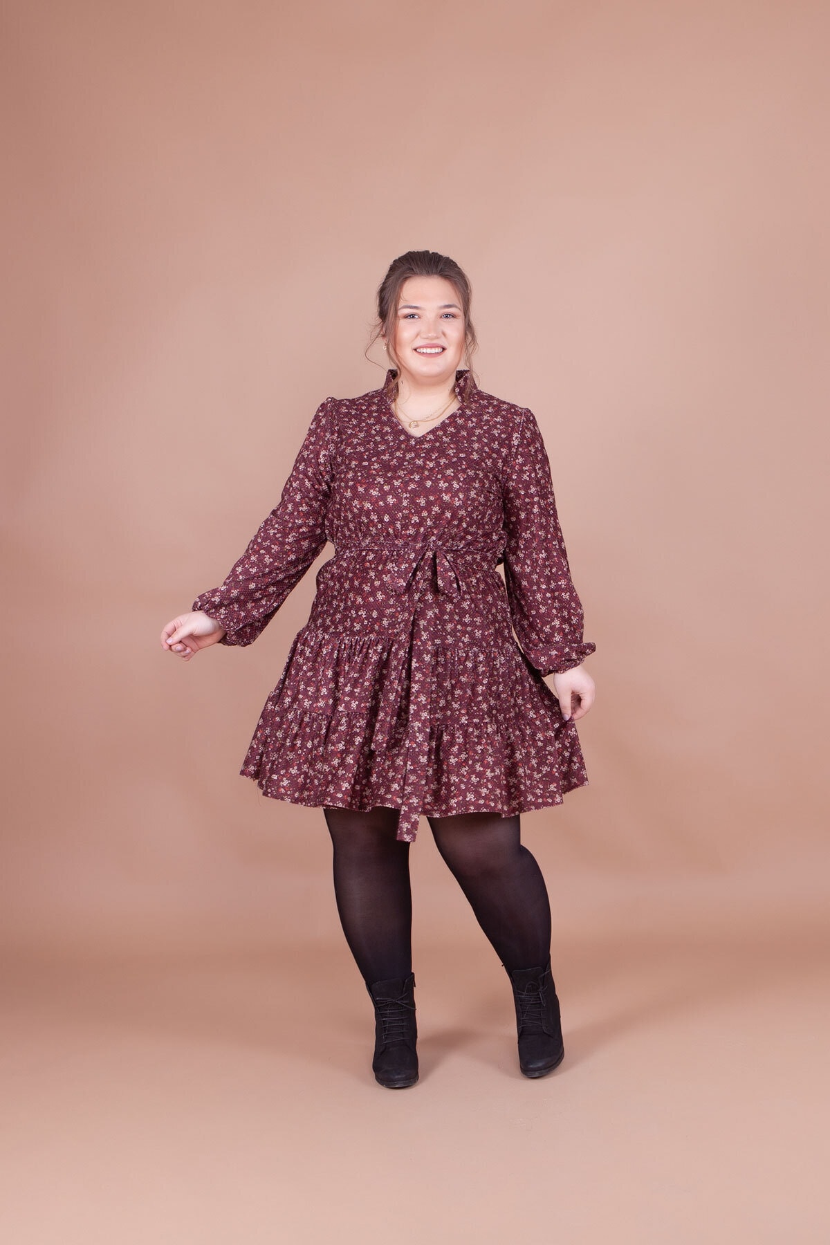 Büyük Beden V Yaka Yün Viskon Midi Mürdüm Kloş Elbise Büyük Beden V Yaka Yün Viskon Midi Mürdüm Kloş Elbise DSN21K6246AE 52