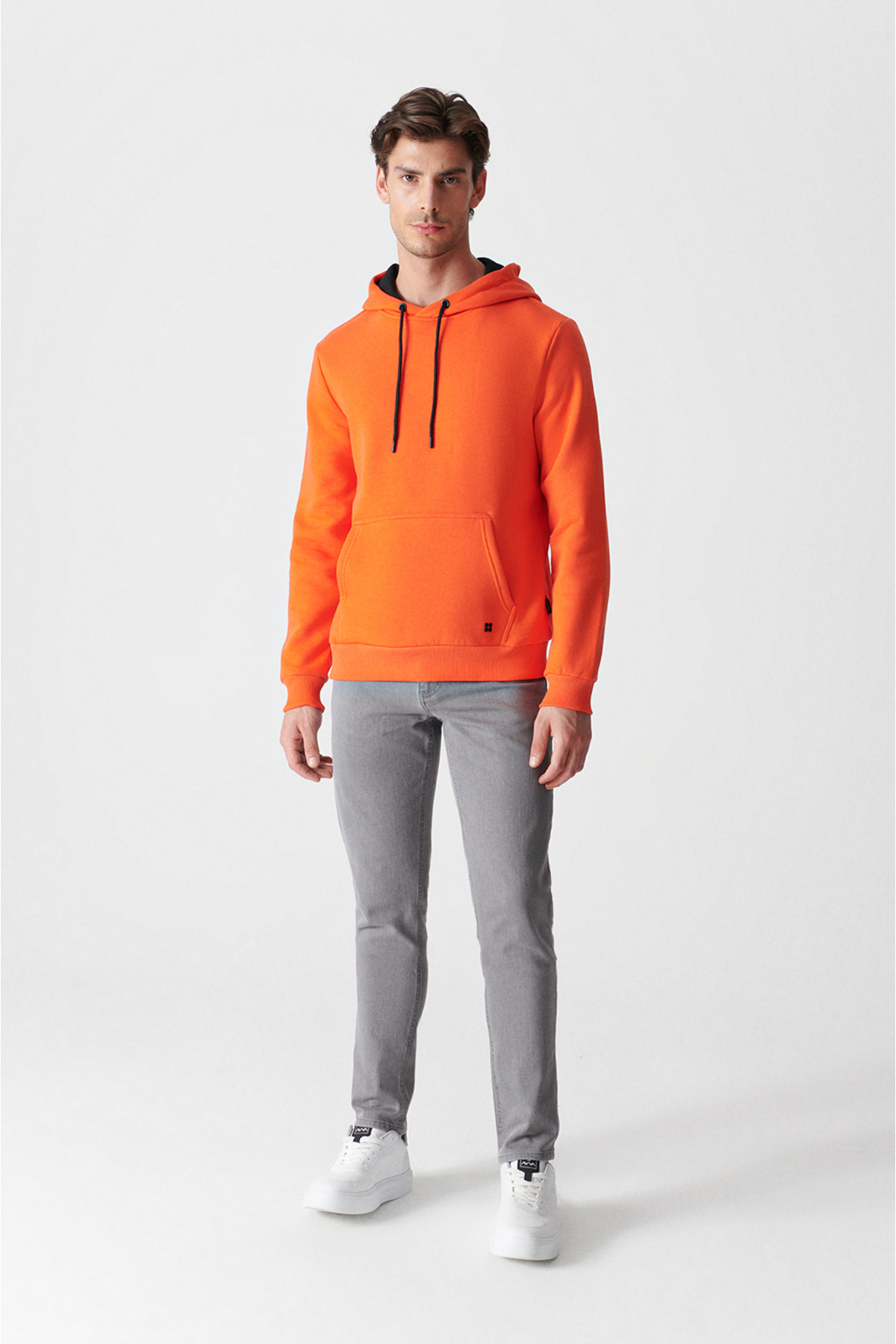 Erkek Neon Turuncu Kapüşonlu 3 İplik Şardonlu Pamuklu Sweatshirt E001018 Erkek Neon Turuncu Kapüşonlu 3 İplik Şardonlu Pamuklu Sweatshirt E001018 3XL