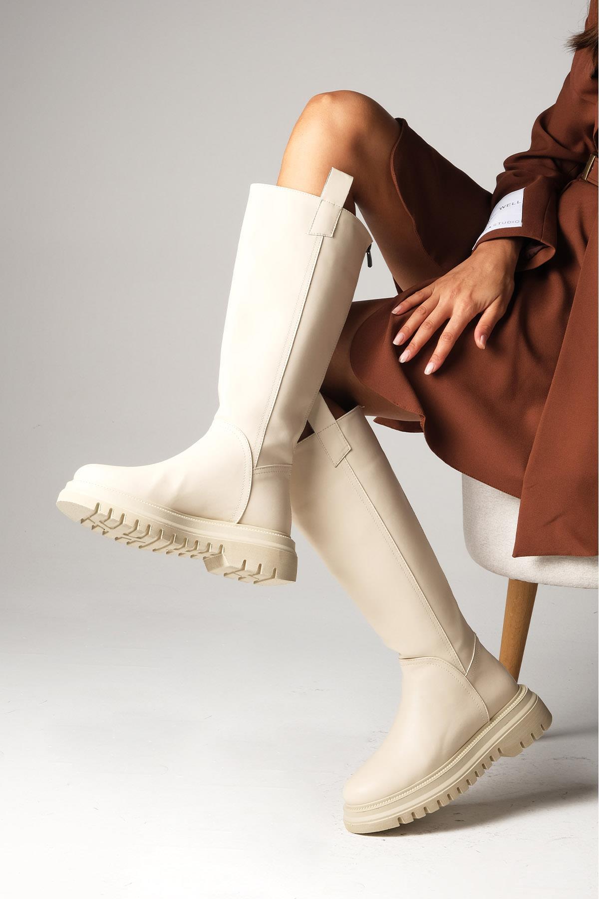Bej Renk Kürk Astarlı Arkadan Fermuarlı Kadın Postal Çizme Bej Renk Kürk Astarlı Arkadan Fermuarlı Kadın Postal Çizme 01363BLC 41