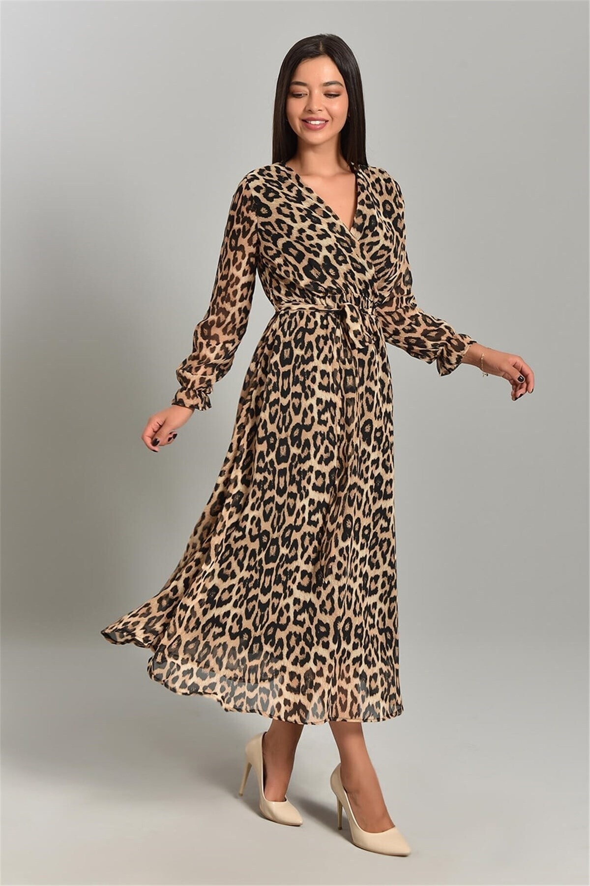 Leopar Desen Kruvaze Büyük Beden Şifon Elbise Leopar Desen Kruvaze Büyük Beden Şifon Elbise ELBISEDELISI-1001 56