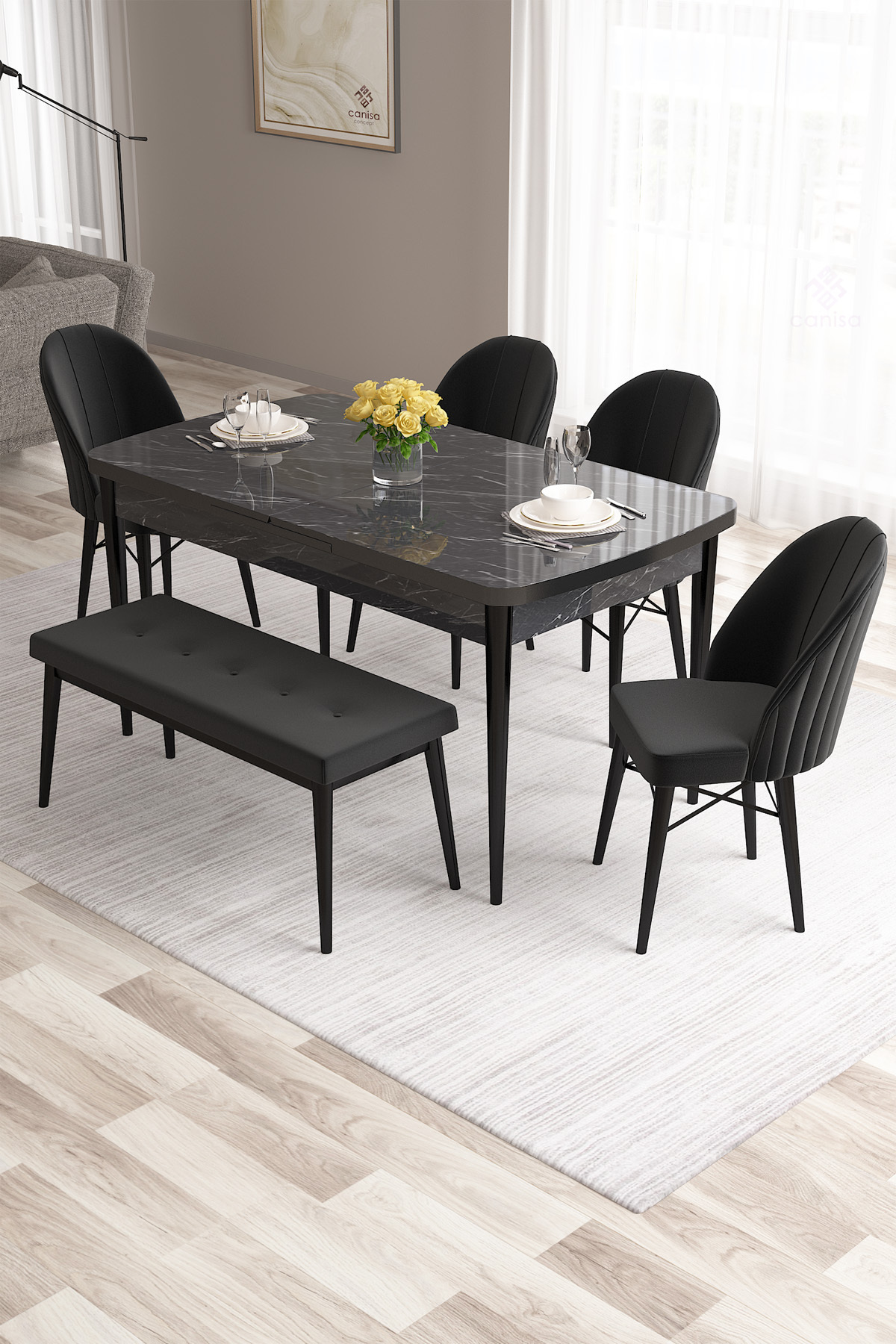 Via Serisi Açılabilir Mutfak Masası Takımı Siyah Mermer Desen Masa 4 Bordo Sandalye 1 Bench Via Serisi Açılabilir Mutfak Masası Takımı Siyah Mermer Desen Masa 4 Bordo Sandalye 1 Bench PRA-4678971-743759 تک سایز