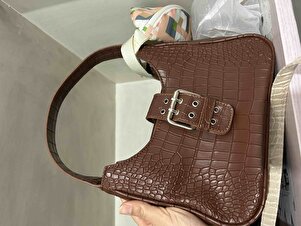 Kadın Taba Tokalı Timsah Desenli Baguette Çanta Kadın Taba Tokalı Timsah Desenli Baguette Çanta 209 تک سایز