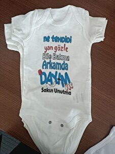 Ne Tehdidi Yan Gözle Bile Bakma Arkamda Dayım Var Sakın Unutma Yazılı Baskılı Bebek Zıbını Ne Tehdidi Yan Gözle Bile Bakma Arkamda Dayım Var Sakın Unutma Yazılı Baskılı Bebek Zıbını 4-LMN 2-4 Yaş