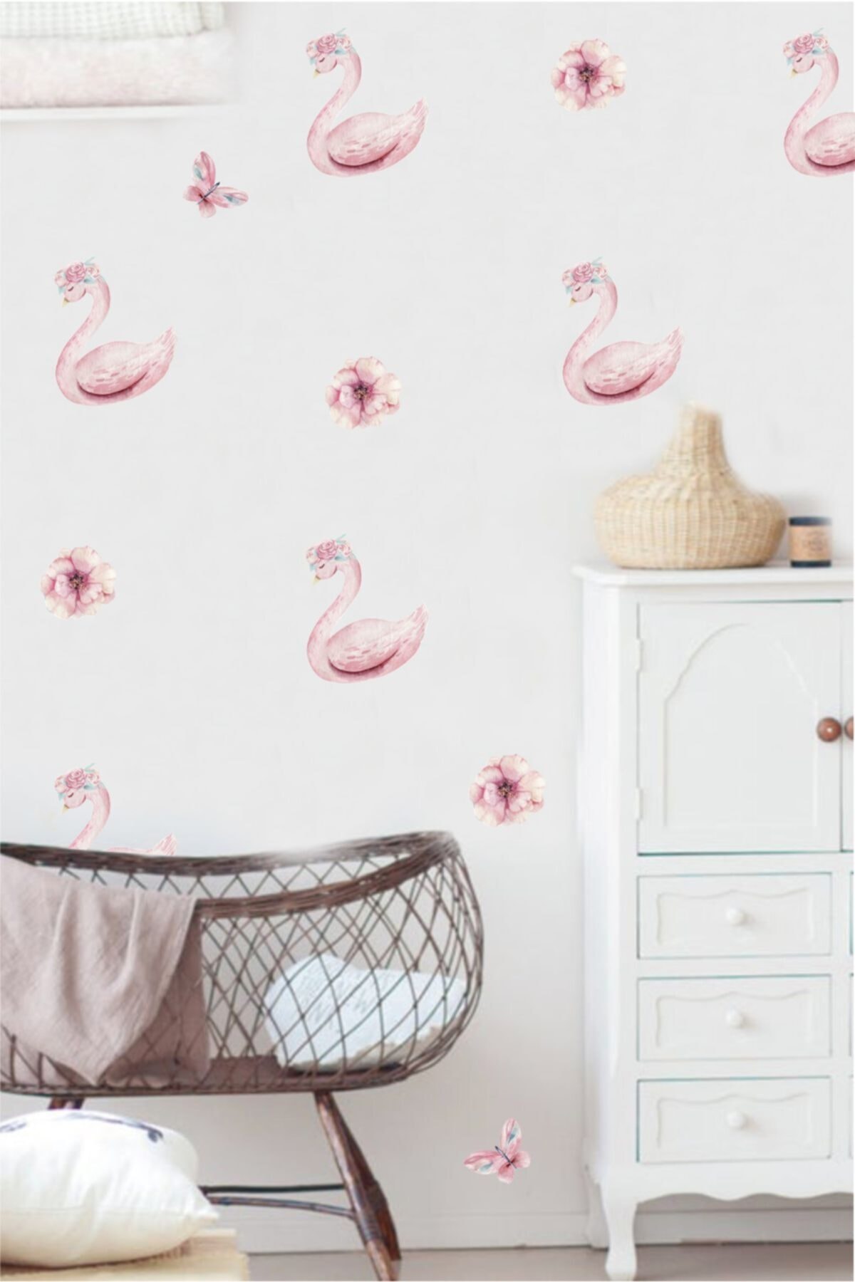 Pembe Çiçekli Kuğu Ve Puantiyeler Duvar Sticker Seti Pembe Çiçekli Kuğu Ve Puantiyeler Duvar Sticker Seti SM0001PMBKGCCK01 تک سایز