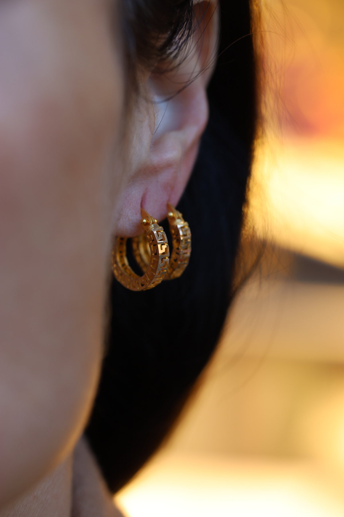 Kadın 14 Ayar Altın Grek Desenli Minimal Halka Küpe Kadın 14 Ayar Altın Grek Desenli Minimal Halka Küpe MMKP1412 تک سایز