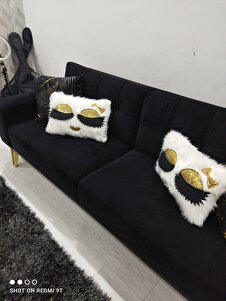 Peluş Kirpik Kırlent Kılıfı - (beyaz Peluş-gold Göz) Peluş Kirpik Kırlent Kılıfı - (beyaz Peluş-gold Göz) YLMZ1005 50 x 30