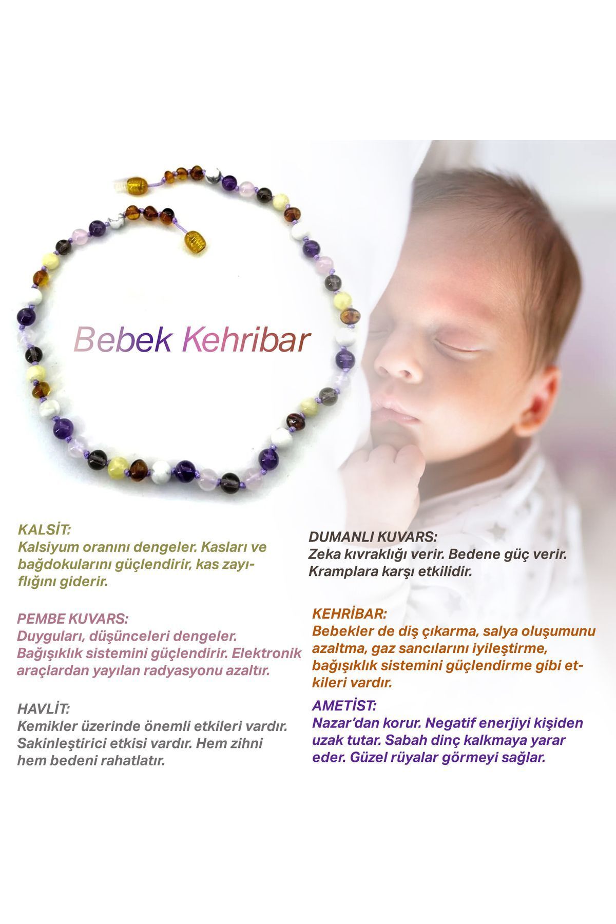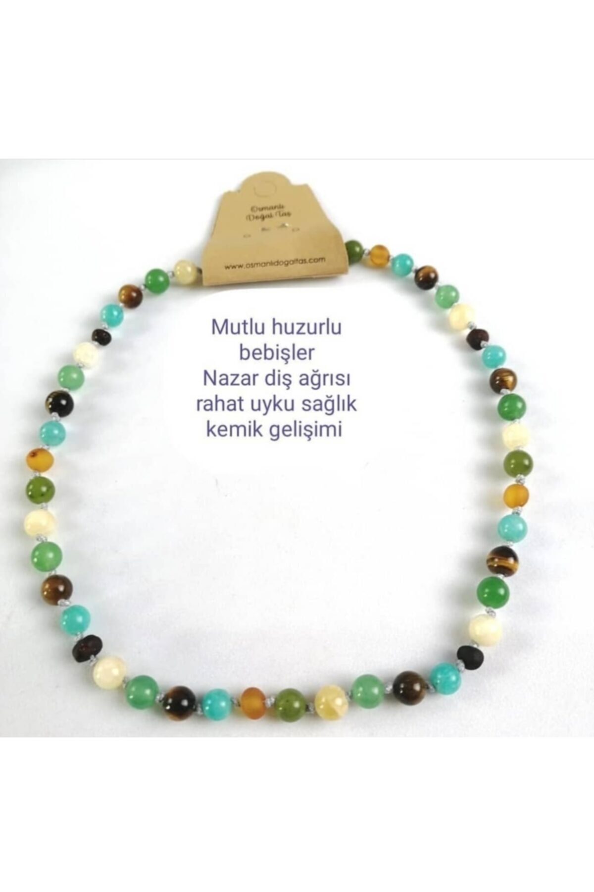 Sertifikalı Doğal Taş Bebek Kolye - Dumanlı Kuvars-kalsit-krizokol-yeşim-lapis-kaplan Gözü-amazonit Sertifikalı Doğal Taş Bebek Kolye - Dumanlı Kuvars-kalsit-krizokol-yeşim-lapis-kaplan Gözü-amazonit ODTK11383 38 cm