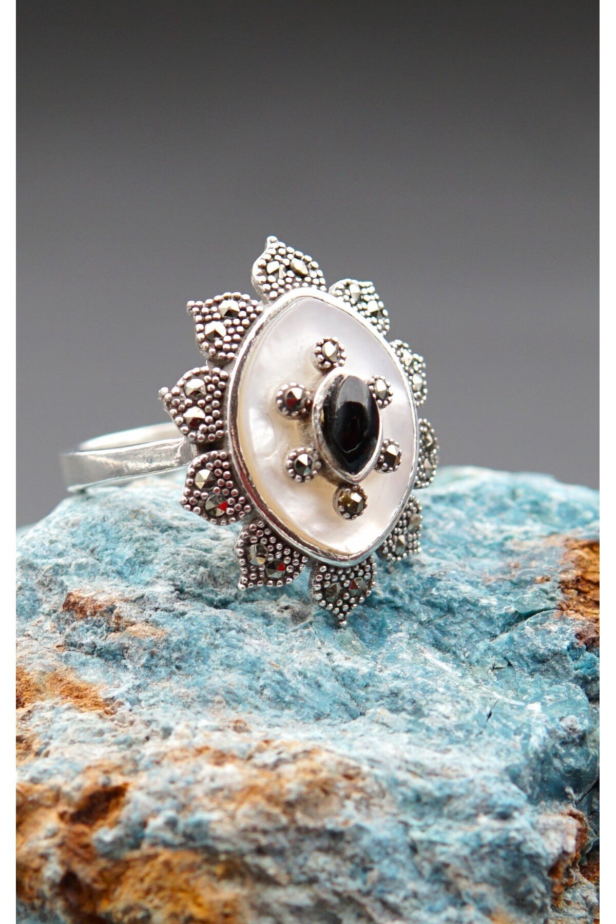 925 Ayar Gümüş Mekik Model Markazit Ve Hakiki Oltu Taşı Yüzük 925 Ayar Gümüş Mekik Model Markazit Ve Hakiki Oltu Taşı Yüzük Efe0137 M